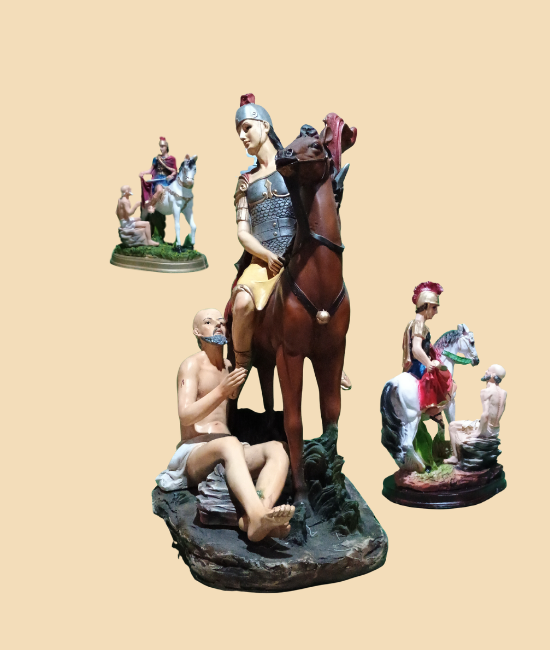 Honra tu fe con esta imponente imagen de San Martín Caballero, elaborada en resina de alta calidad, con un acabado en tonos semimates que resalta cada detalle de su armadura, su capa y su noble gesto al compartir su manto. Con 60 cm de altura, es una pieza ideal para altares, capillas o espacios de devoción personal.